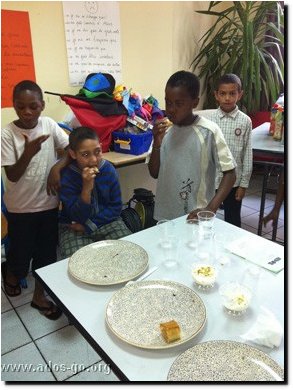 Dégustation de quelques plats salés : feuilles de vignes, makis, houmous, tarama ; mais aussi de quelques desserts : cheese cake, éclairs au chocolat !