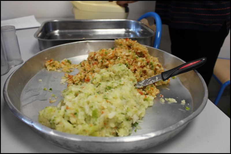 OlivesCouper les oignons en julienne, couper les carottes en dés mélanger avec du poivre, de 2 CaS de moutarde et 1 cube.