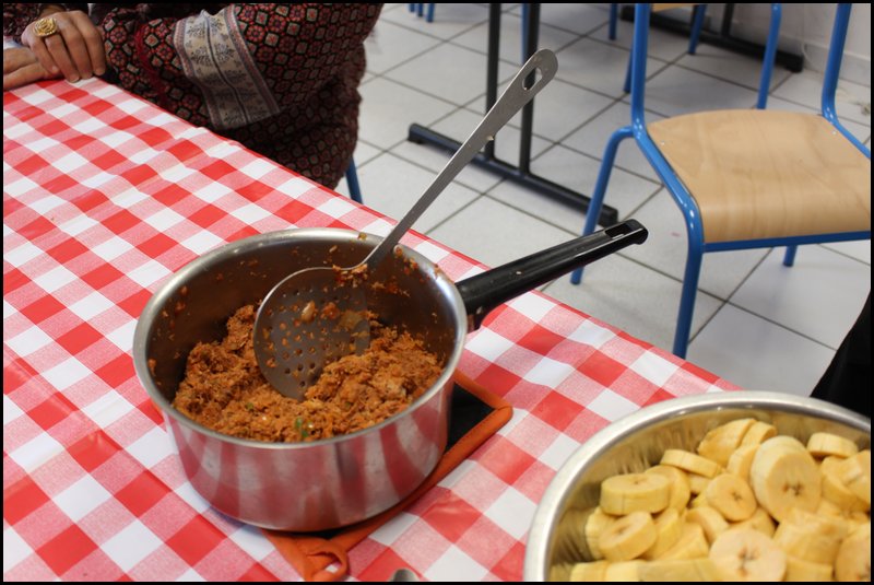 Pour cette nouvelle rencontre culinaire, direction l’Afrique subsaharienne, au menu riz accompagné d’une sauce poulet yassa, de bananes plantain, des pastels (des beignets salés garnis de thon, ou viande hachée au choix).